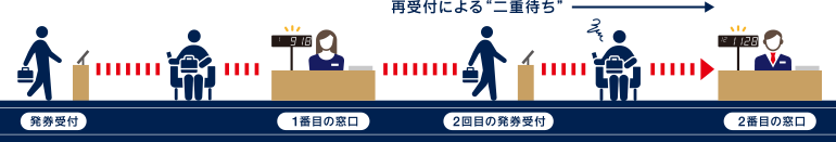 一度発見された番号カードで、各窓口からの呼び出しを待つだけとなり、トータルの待ち時間を短縮することも可能となります。
