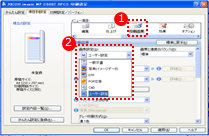 ❶項目別設定タブのメニュー項目にて印刷品質を選ぶ。