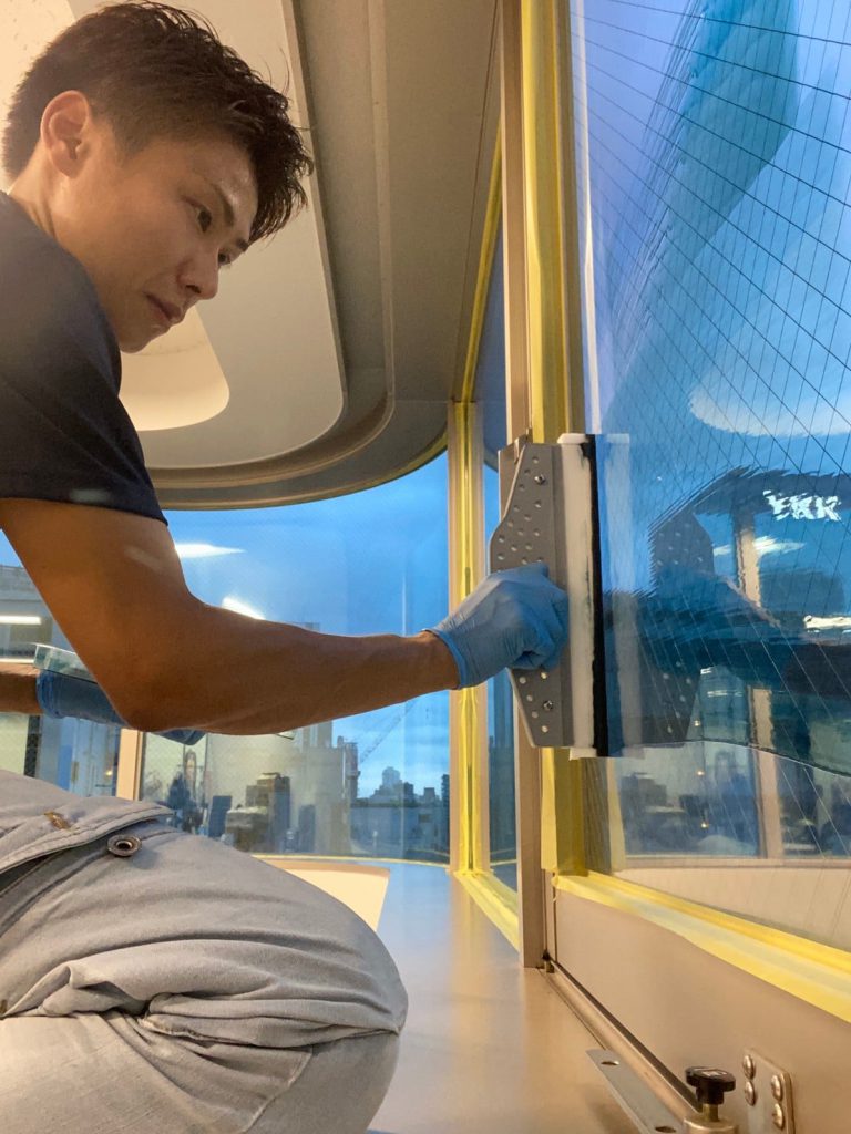 クリスコートの施工は、窓ガラスを交換するなどの大がかりな作業は一切不要です。住まいでもオフィスでも店舗でも、そして車でも、今ある窓ガラスにコーティング剤を塗るだけ。基本的に、窓ガラスの内側(室内側)にコーティングするため、脚立さえあればほとんどの窓ガラスに施工できます。