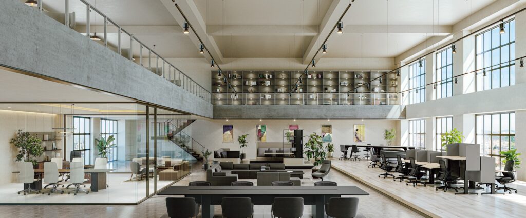 従来のセキュリティ重視の個室やカンファレンスルームを中心としたエグゼクティブ専用スペースに加え、従業員とエグゼクティブがコミュニケーションを取りやすいオープンなスペースを設えることも重要です。